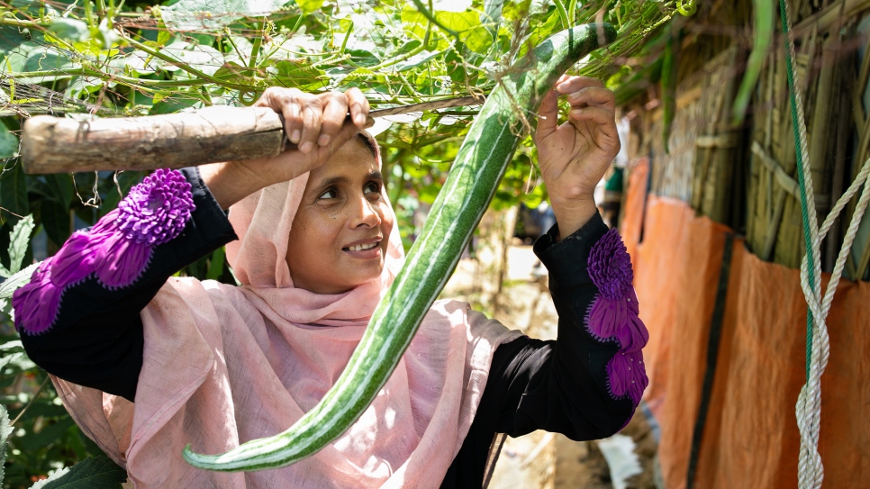 ترتسم الابتسامة على وجه ساهرة عندما ترى الشتلات الخضراء تنمو في حديقتها في كوتوبالونغ؛ جنوب شرق بنغلاديش، فبالنسبة إليها، لا يعني ذلك توفر الطعام الطازج لها ولأولادها الثلاثة فحسب، لكنه أمرٌ يعيد إلى الذهن أيضاً ذكرى الوطن.