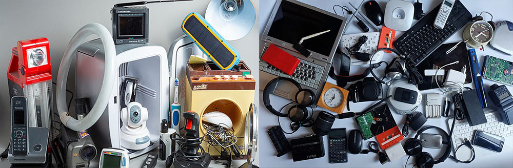 تتكون النفايات الإلكترونية، من الهواتف المهملة، والطابعات، وأجهزة التلفاز ، وفرش الأسنان الكهربائية والعديد من السلع الإلكترونية الأخرى التي لم تعد مستخدمة.