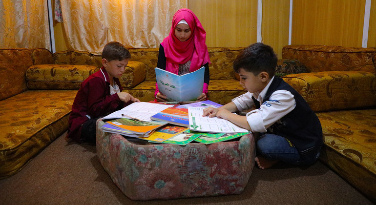 وفي أحد مخيمات اللاجئين في الأردن، تستغل فتاة سورية شغفها بالتدريس من خلال مساعدة الأطفال الآخرين في دراستهم.