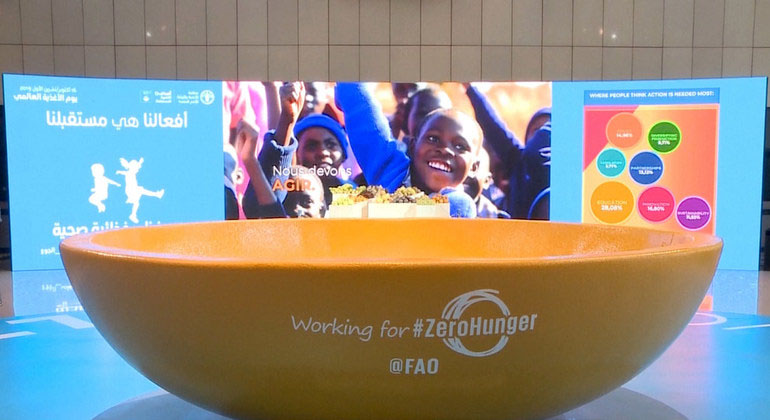ونحن إذ نحتفل بالذكرى السنوية الخامسة والسبعين لإنشاء منظمة الأغذية والزراعة للأمم المتحدة، قال الأمين العام إننا نحتاج إلى تكثيف جهودنا لتحقيق رؤية أهداف التنمية المستدامة.