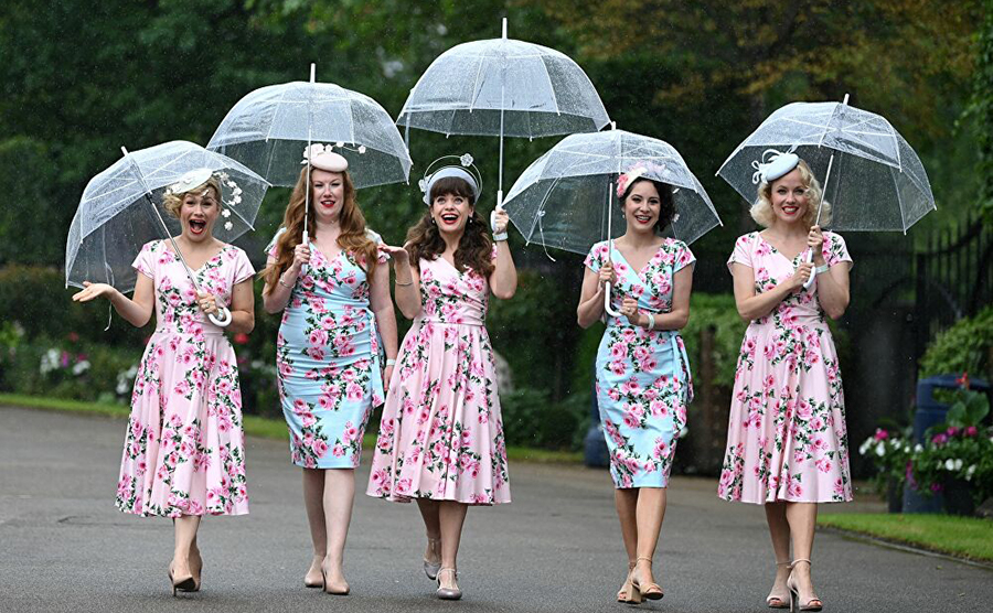 أعضاء من فرقة الجاز "توتسي كوليرز" في اليوم الثالث من لقاء سباق الخيل "رويال أسكوت"، في أسكوت، غرب لندن في 17 يونيو 2021.