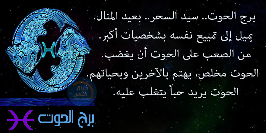 برج الحوت.. سيد السحر.. يتمتع بسحر بعيد المنال يمكن أن يكون مغرياً للبعض ومحبطاً للآخرين. وهو يميل إلى تمييع نفسه بشخصيات أكبر. الحوت يريد حباً يتغلب عليه. الحوت مخلص، يهتم بالآخرين وبحياتهم. من الصعب على الحوت أن يغضب. فهو يتجاهل مشاعر الانزعاج الصغيرة، ويلقي اللوم على نفسه عندما ينفجر الموقف.