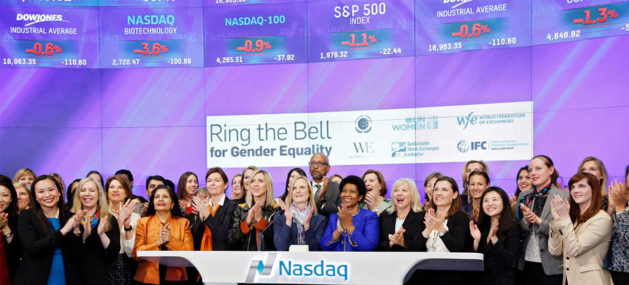 احتفالا باليوم العالمي للمرأة، الموافق الثامن من مارس/آذار، استضافت 63 بورصة حول العالم مراسم خاصة لدق أجراس إقفال التداولات المالية، لرفع الوعي بالدور المحوري الذي يمكن أن يلعبه القطاع الخاص في دفع هدف التنمية المستدامة الخامس المعني بالمساواة بين الجنسين.