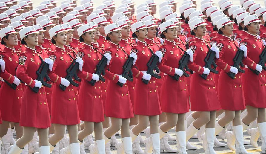 تم استعراض تشكيل من الميليشيات النسائية، جرى اختياره من قوة الميليشيات في حي تشاويانغ ببكين، عبر ميدان تيان آن ، مؤخراً، كجزء من الاستعراض العسكري للعيد الوطني احتفالا بالذكرى الـ70 لتأسيسها جمهورية الصين الشعبية.