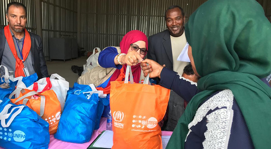 يستمر صندوق الامم المتحدة للسكان والمفوضية السامية للأمم المتحدة لشؤون اللاجئين في ليبيا بتوزيع حقائب حواء للنساء و الفتيات النازحين في عدة مناطق في طرابلس . توزيع الحقائب يأتي استجابة لاحتياجات النازحات من نساء ليبيا .
