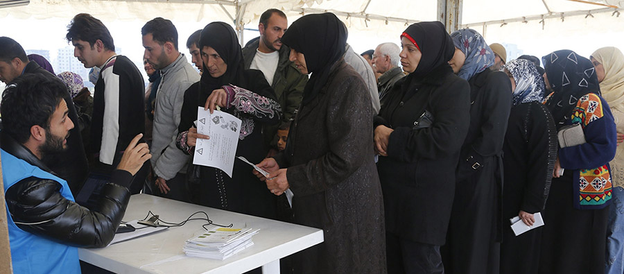لاجئون يصطفون أمام مركز التسجيل التابع لمفوضية الأمم المتحدة العليا للاجئين في طرابلس بلبنان