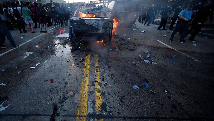 وبحسب ما ورد أُضرمت النيران في عدد من مركبات الشرطة بعد أن اشتبك المتظاهرون وضباط الشرطة.