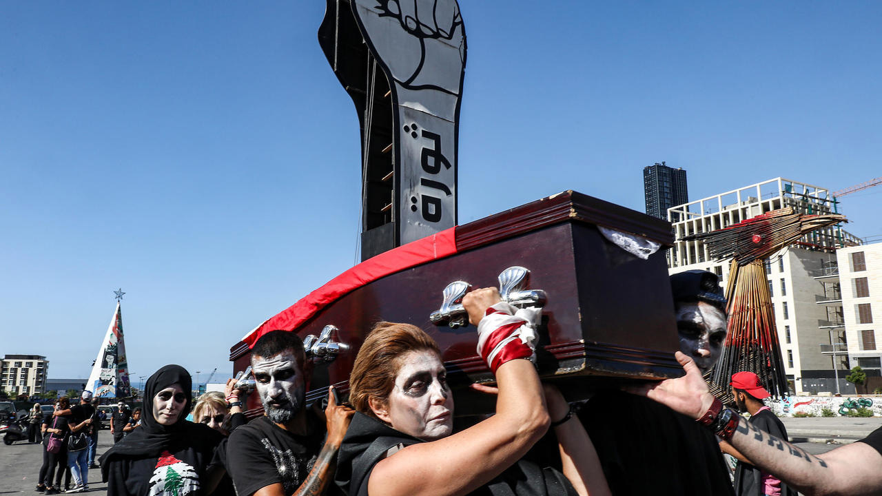 محتجون لبنانيون يحملون نعشا رمزيا لبلادهم على وقع الأزمة الاقتصادية الطاحنة التي تجتاحه
