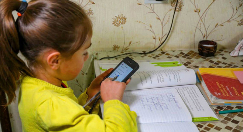 في جورجيا، حيث هناك محدودية في خدمة الإنترنت والهاتف الخلوي بالنسبة للأطفال الذين يعيشون في المناطق الريفية، تقوم فتاة صغيرة بفحص الواجبات المنزلية التي أرسلها مدرسها في محادثة جماعية، حيث تتشارك هاتف والدتها الخلوي مع أشقائها الثلاثة.