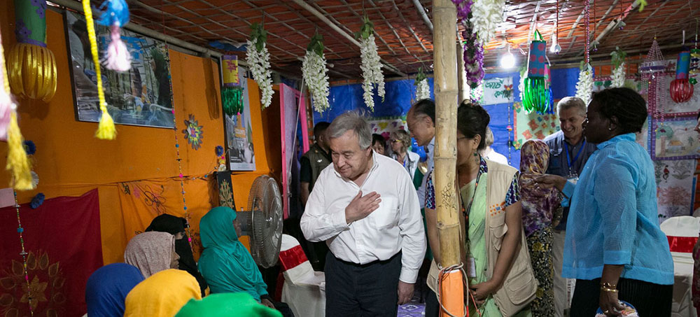 وفي مقاله قال غوتيريش إن "ضحايا ما وصف عن حق بالتطهير العرقي لأقلية الروهينجا، ومعظمها من المسلمين، يواجهون معاناة لا يمكن إلا أن تثير غضب أو ألم من يزورهم".