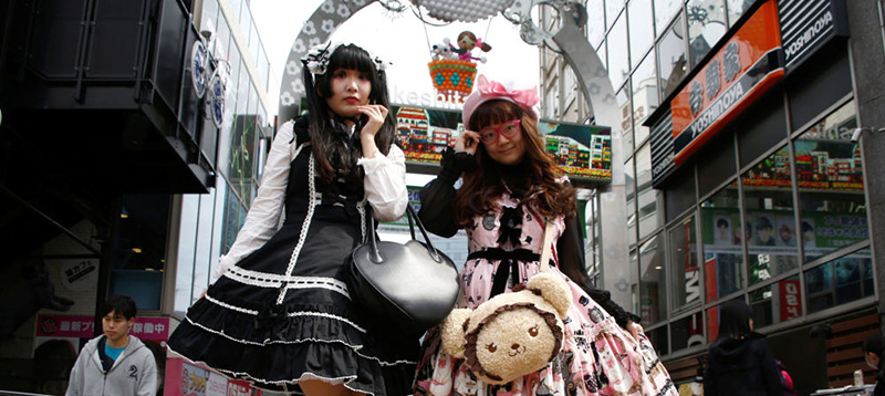 فتاتان ترتديان زي "موضة لوليتا" - متأثرتين بتصاميم عهد فيكتوريا في أحد أحياء التسوق بطوكيو، اليابان.