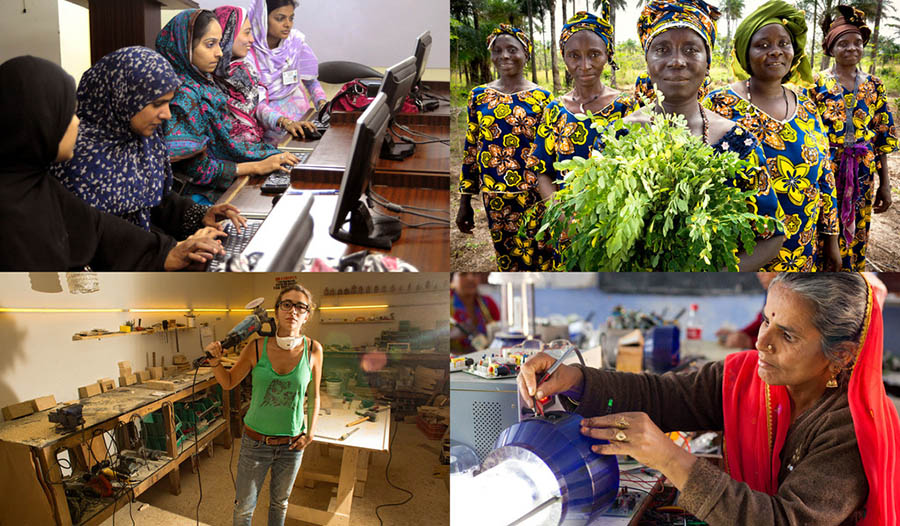 طالبات في معهد تقنية المعلومات في باكستان؛ تعاونية للمرأة الريفية في غينيا؛ سيدات الأعمال والعاملات، لبنان؛ المرأة والتكنولوجيا. صور متنوعة بمناسبة اليوم العالمي للمرأة.